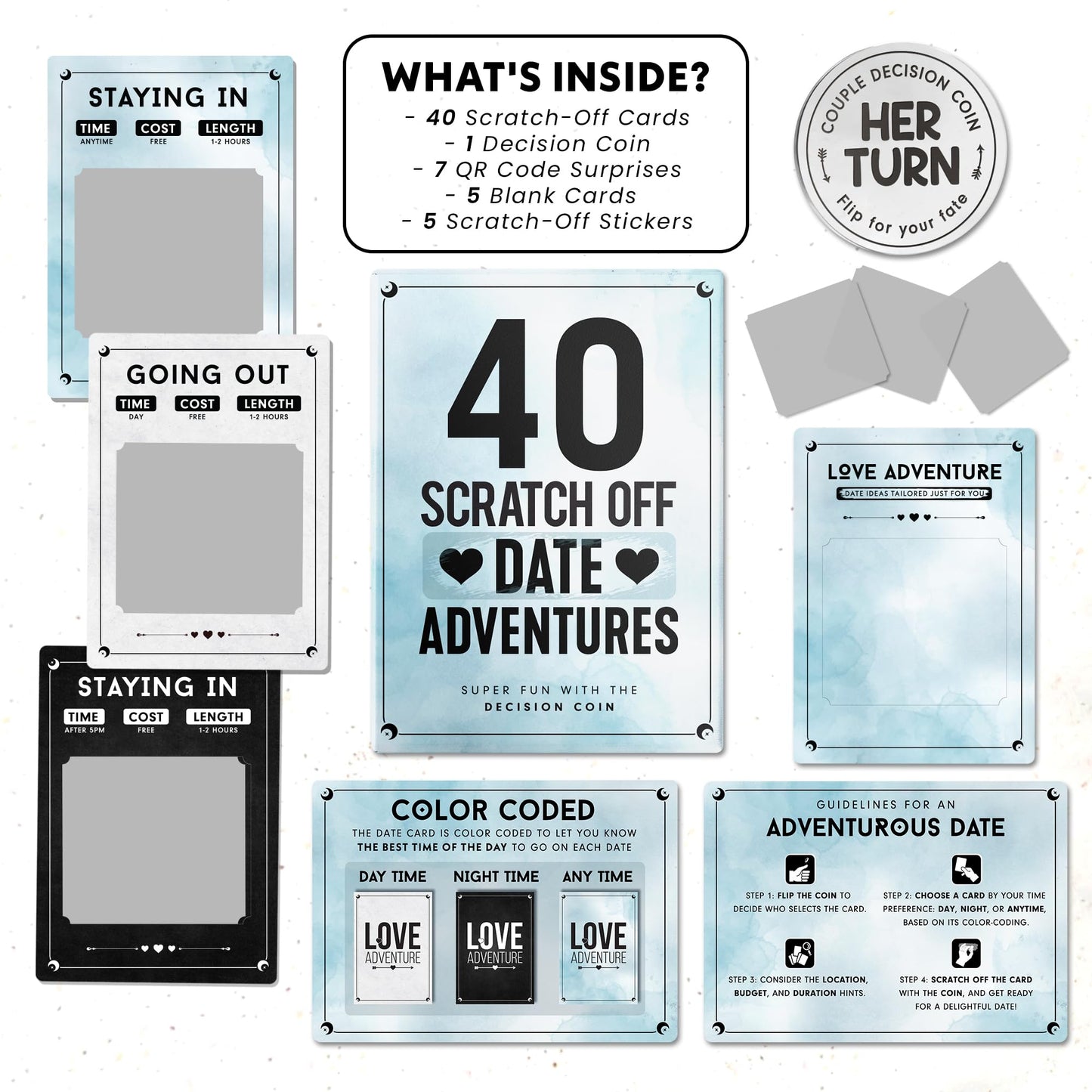 Simple and clear – scratch off the challenge card, and you MUST complete the adventure date. Each card provides useful clues, including the time of day, budget, length of the date, and whether it's intended for indoor or outdoor activities.