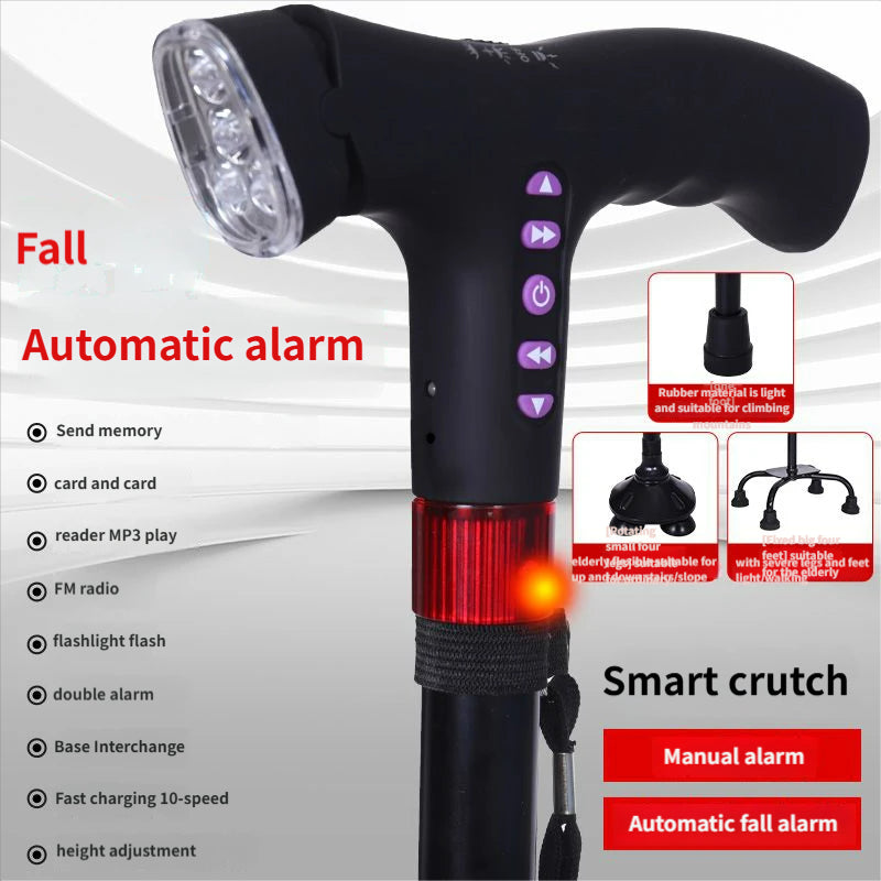 4-in-1 Smart Walking Cane for Seniors - Anti-Slip Adjustable Cane with FM Radio, SOS Alarm & LED Light